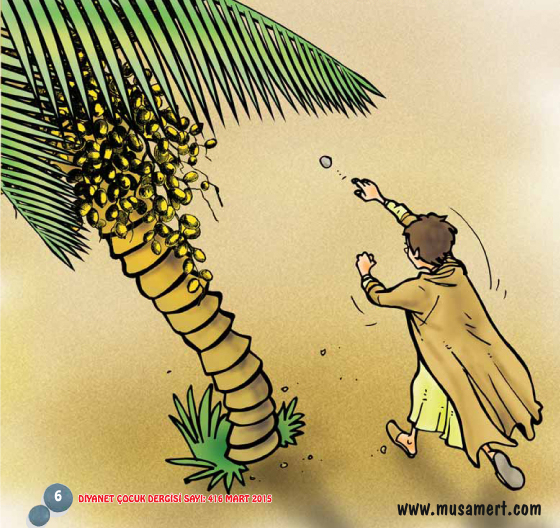 — Çocuğum, hurma ağaçlarını neden taşlıyorsun, diye sordu.