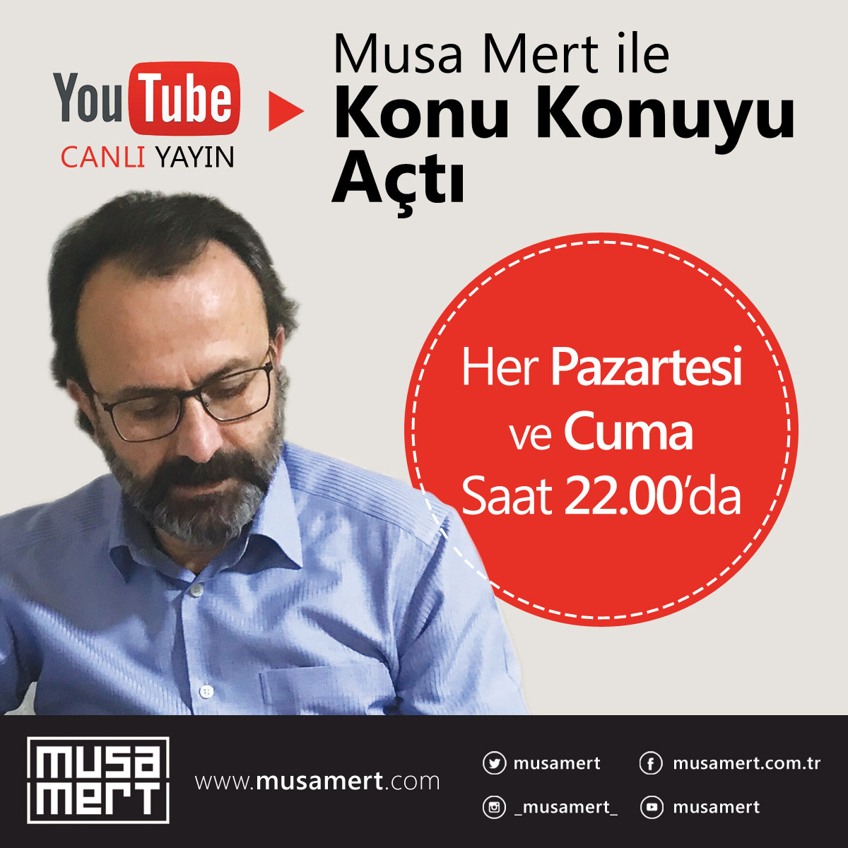 Musa Mert ile Konu Konuyu Açtı - YouTube Canlı Yayın youtube.com/musamert kanlından her Pazartesi ve Cuma günleri saat 22.00'da sizlerleyiz. 30-Mar-2020 22.00 www.youtube.com/musamert 398