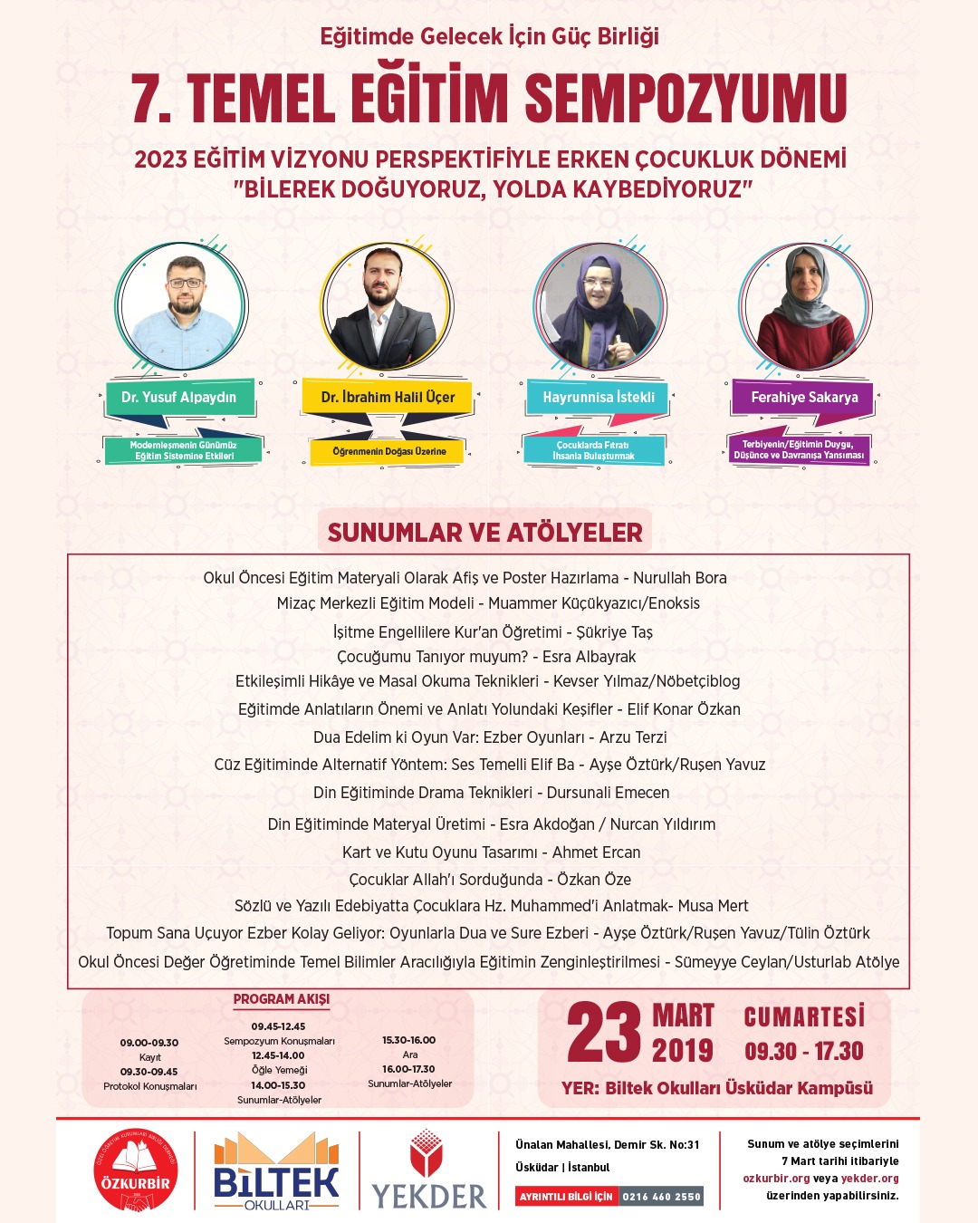 ÖZKURBİR, BİLTEK Okulları ve YEKDER'in ortaklaşa düzenlediği 7. Temel Eğitim Sempozyumu'nda "Sözlü ve Yazılı Edebiyatta Çocuklara Hz. Muhammed'i Anlatmak" konulu sunum yapacağım. Aynı sunum iki ayrı oturumda gerçekleşecektir. İlgilileri bekliyorum.